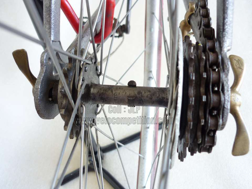 La roue libre 3 vitesses 16 – 18 –20 dents et un pignon fixe de 15 dents de l’autre coté du moyeux.