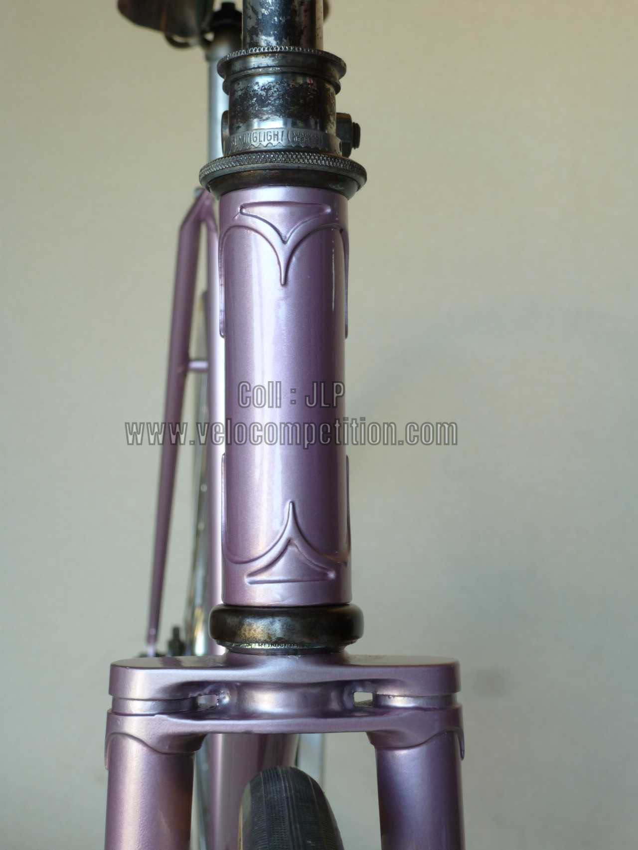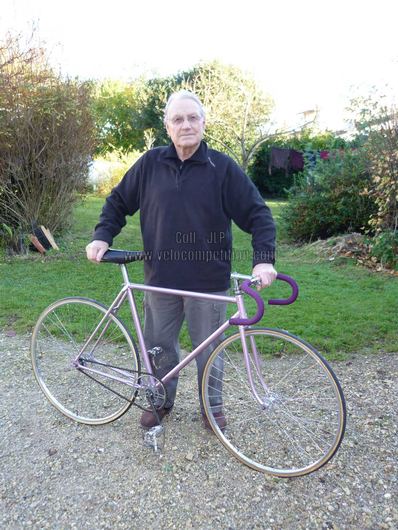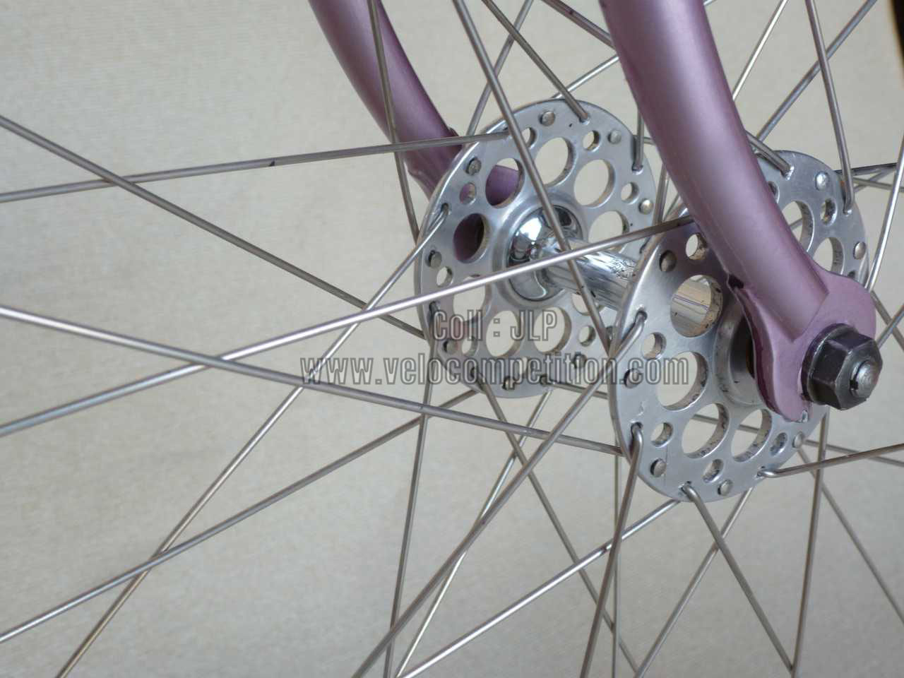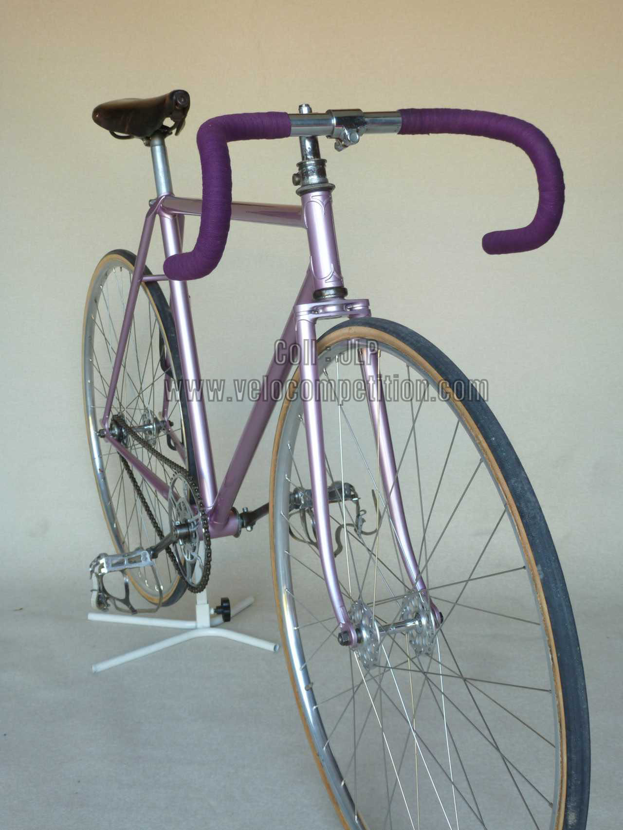 Le vélo a été repeint comme à l’origine, couleur retrouvée sur le pivot de la fourche au démontage et confirmé par Pierrot lui-même.