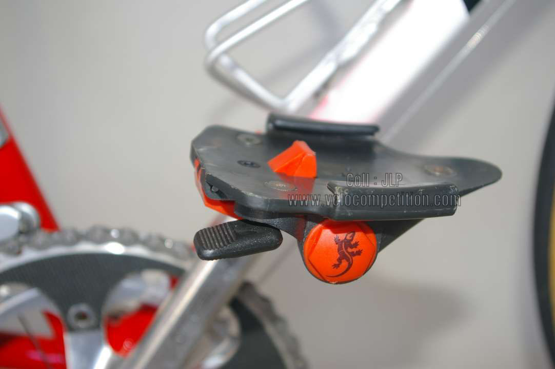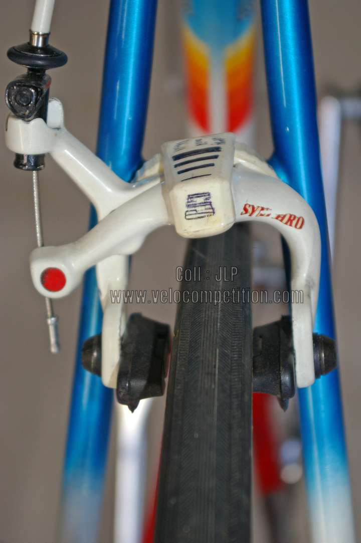 Vélo de Denis Leproux de 1988 lorsqu’il appartenait à l’équipe Z Peugeot. Coté nouvautés l’apparition des pédales automatique systeme 3 Adidas.