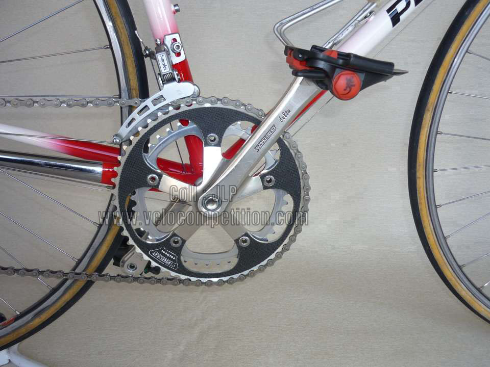 Vélo de Denis Leproux de 1988 lorsqu’il appartenait à l’équipe Z Peugeot. Coté nouvautés l’apparition des pédales automatique systeme 3 Adidas.