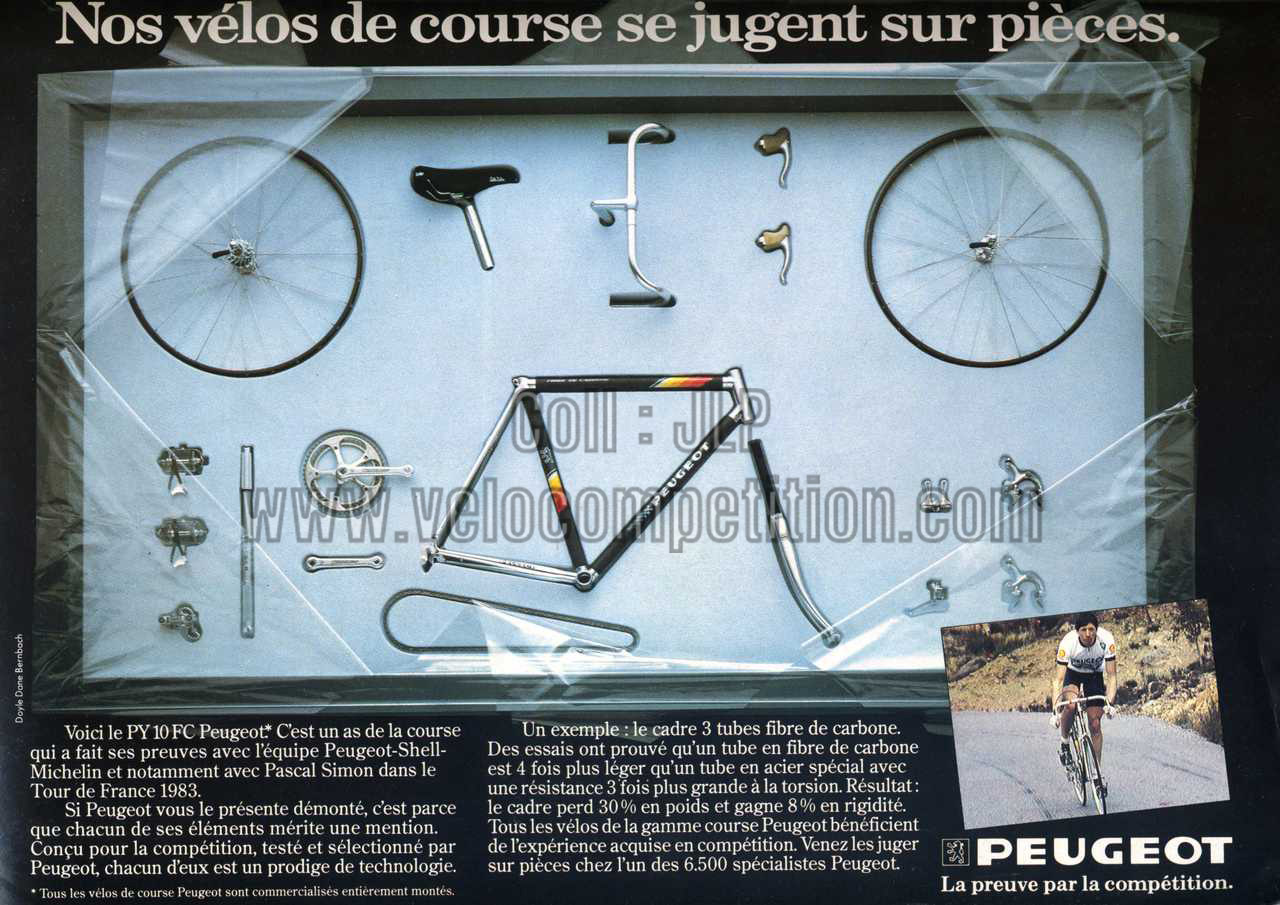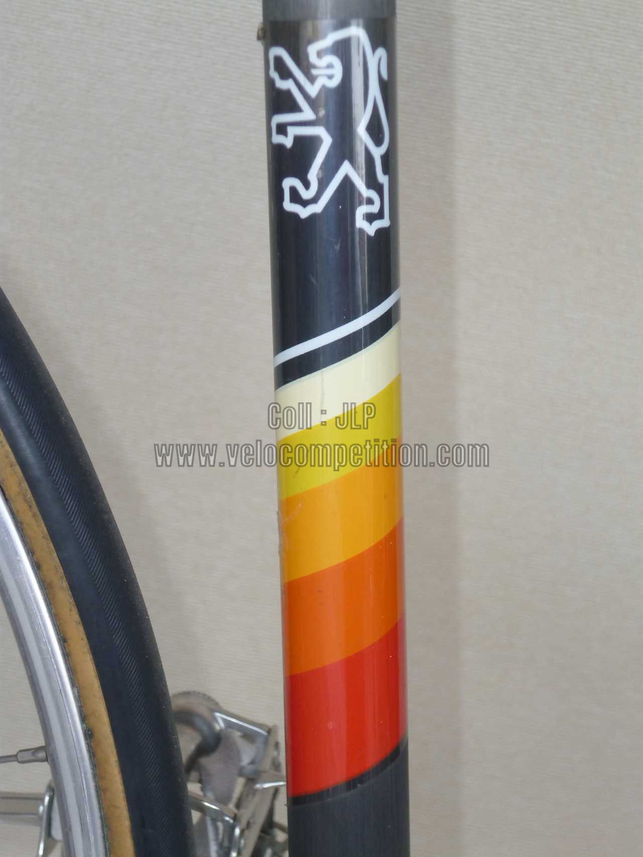 c’est avec un vélo semblable que les coureurs de « l’équipe Peugeot Shel Michelin » avaient pour la saison 1983. Très beau cadre, 30% plus léger et 8% plus rigide aussitôt adopté par le monde des pros. Cette année là, l’équipe Peugeot a failli remporter le Tour de France avec Pascal Simon (abandon avec le maillot jaune : fracture de l’omoplate)